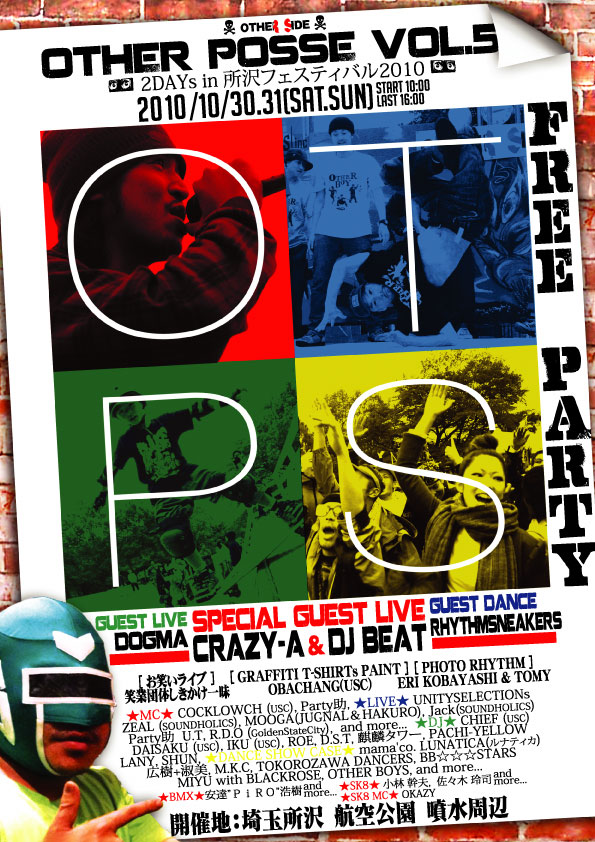さらに31日のスペシャルゲスト・ライブには、な・な・なんと今年も「Crazy-A」をむかえて、大人から子供まで楽しめるOTHER POSSEは初日から全力でいきます。