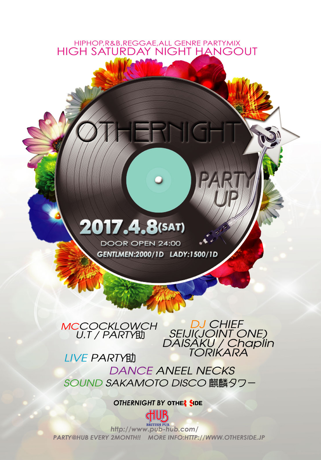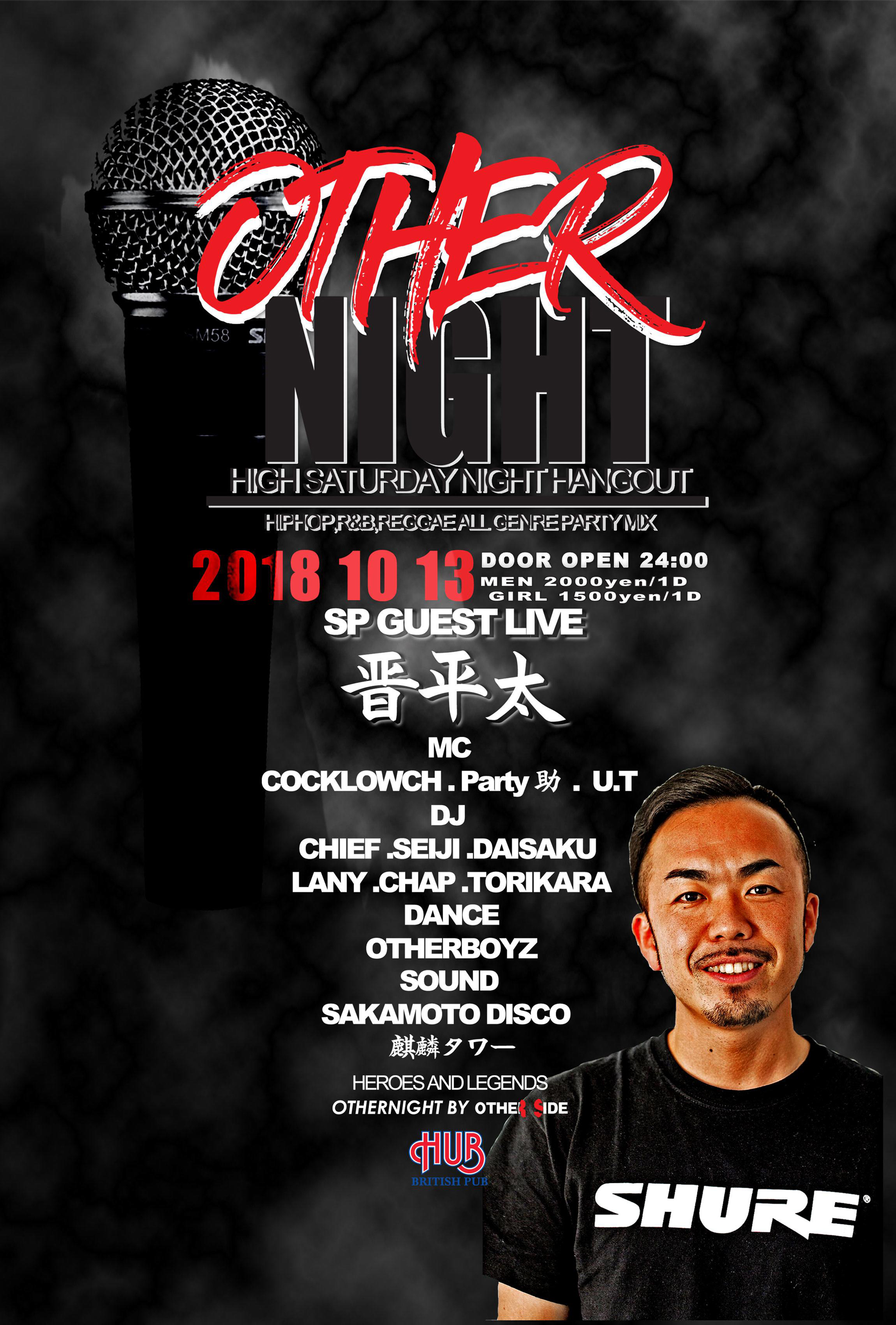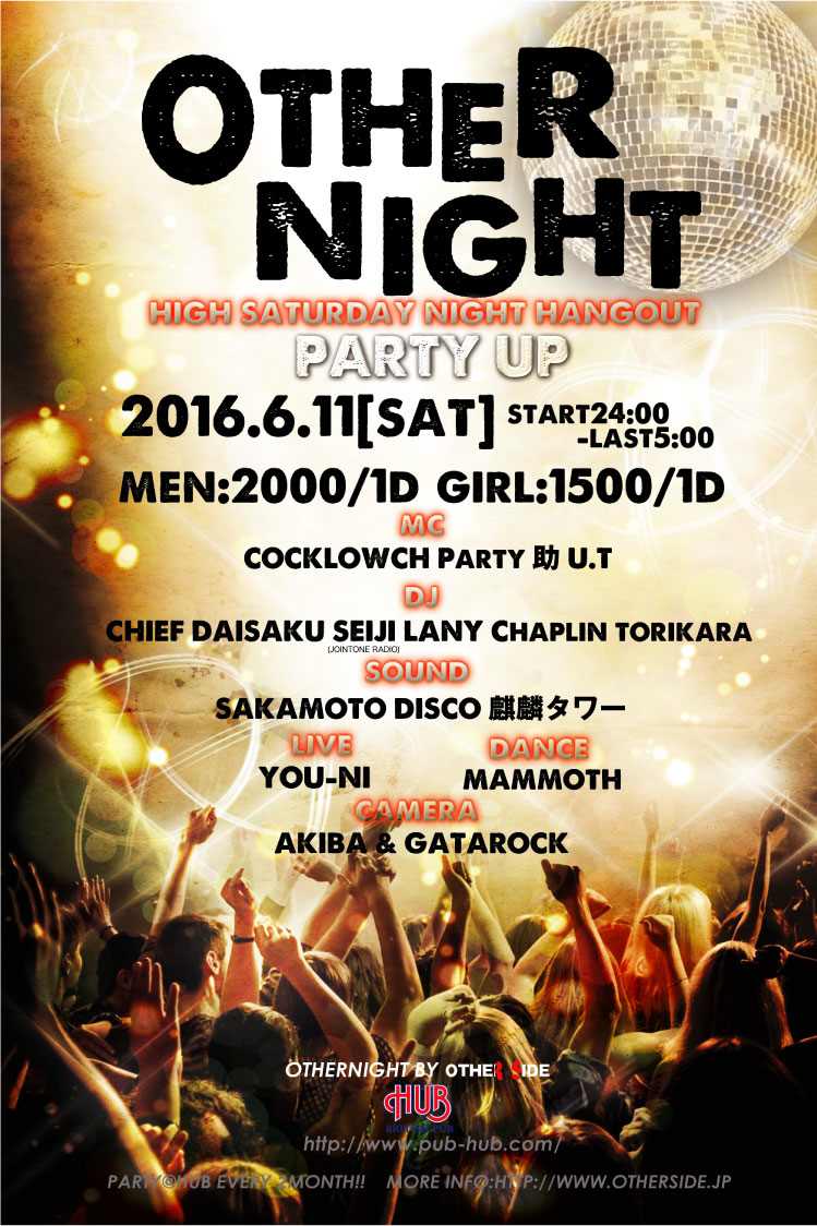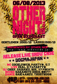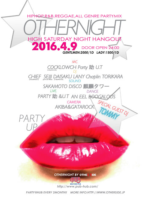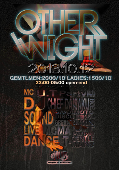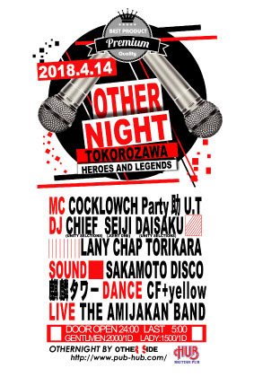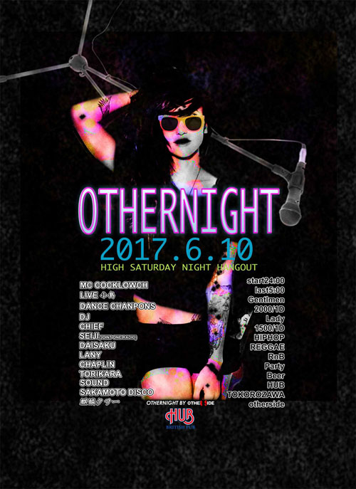 言わずと知れた所沢を代表するHipHop,R&B、Reggaeイベント「OTHER!NIGHT」@HUB。偶数月第2土曜日に行われている(2月は変更あり)毎回、大好評のイベントはLIVE,DANCE SHOW CASEは必見!!誰もが楽しめるをコンセプトに好き勝手やっているようだが実に毎回、お客さんも出演者もリフレッシュ出来る様な空間になっている。初めての人もよく来る人も毎回、新鮮な空気をかもちだしているので飽きのこないイベントとなっていて、こんな空間ほかにはないです!是非一度、自分の目と耳で、その場の雰囲気を感じ取りに来てみてはいかがでしょうか?